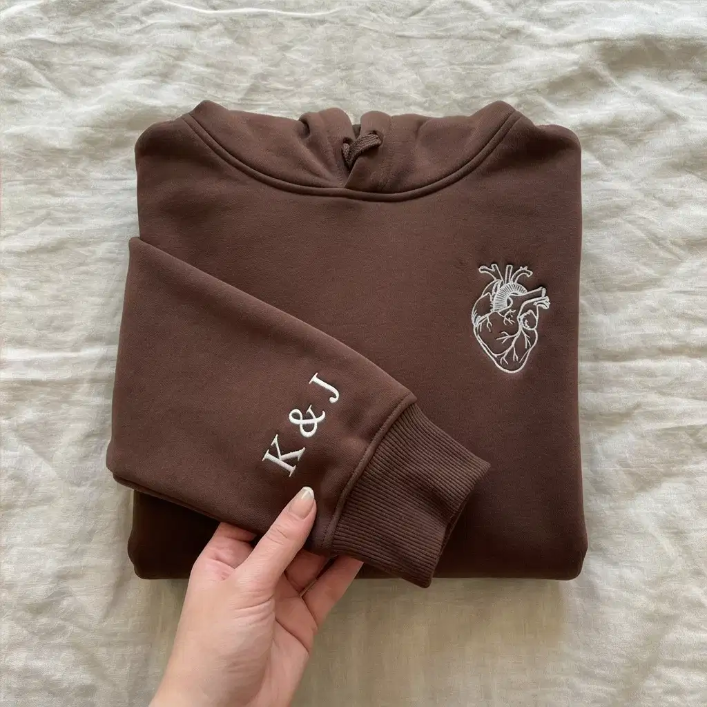 Show your bond with style. This anatomical heart embroidered matching hoodie for couples with custom initials is more than clothing—it’s a statement of connection. Each hoodie features a detailed heart design on the chest and personalized embroidery on the sleeve, letting you add initials, words, or phrases that matter most. Available in multiple colors and sizes, it’s perfect for Valentine’s Day, anniversaries, birthdays, or everyday wear. Designed for couples who want meaningful fashion and personalized comfort. Keywords: anatomical heart embroidered hoodie, matching hoodie for couples, personalized sweatshirt with initials.