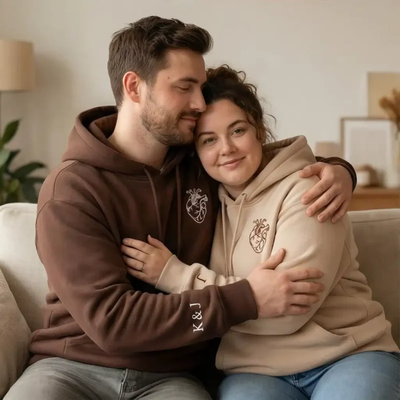 Anatomical Heart Embroidered Matching Hoodie – Personalized Gift for Couples