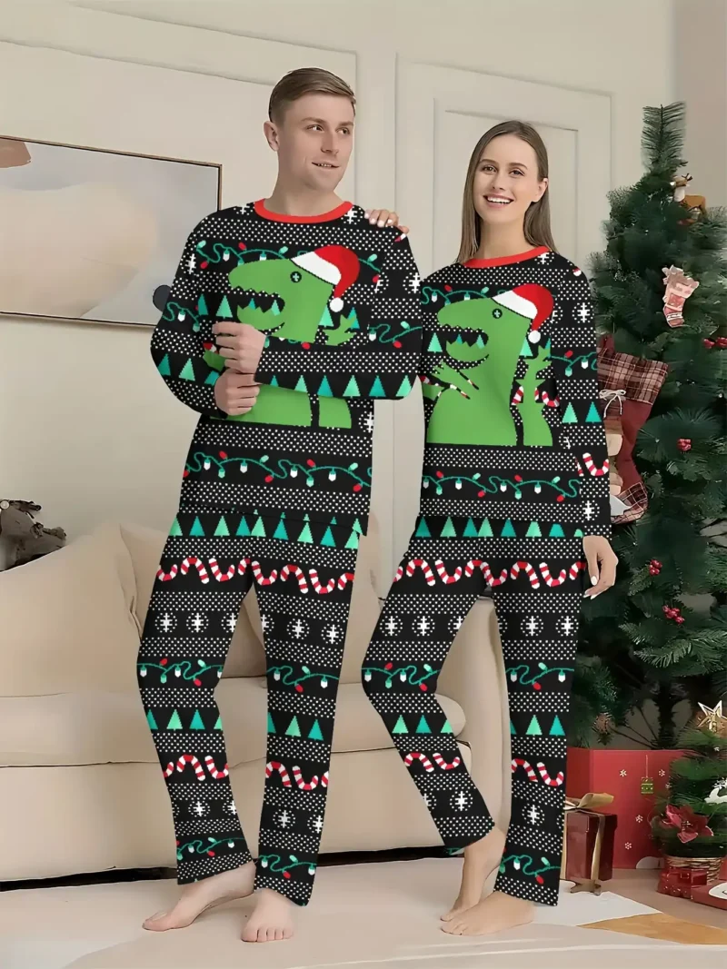 Soft fabric ensures comfort for both kids and adults, while the playful dinosaur design makes this set stand out from typical holiday sleepwear.