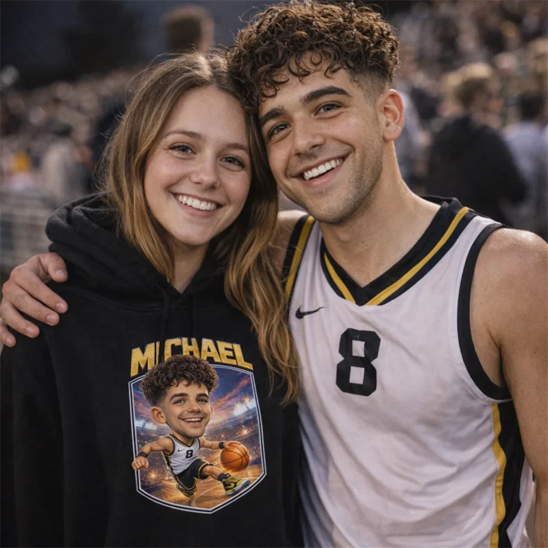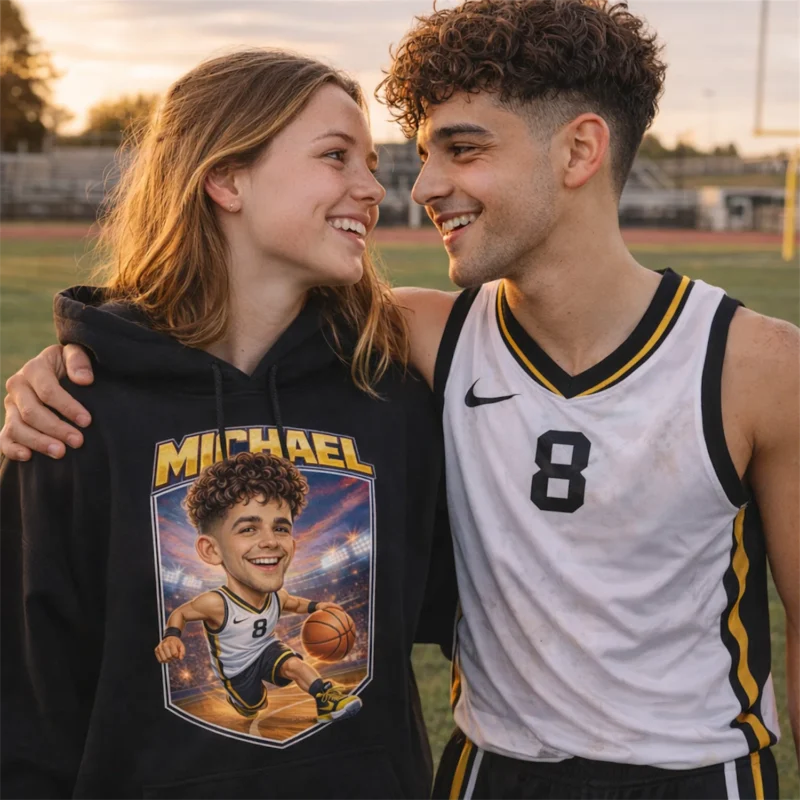 Senior Night happens once. The gym is full, the lights are bright, and four years come down to that final home game. A custom caricature shirt is the keepsake that outlasts any plaque or trophy on a shelf.