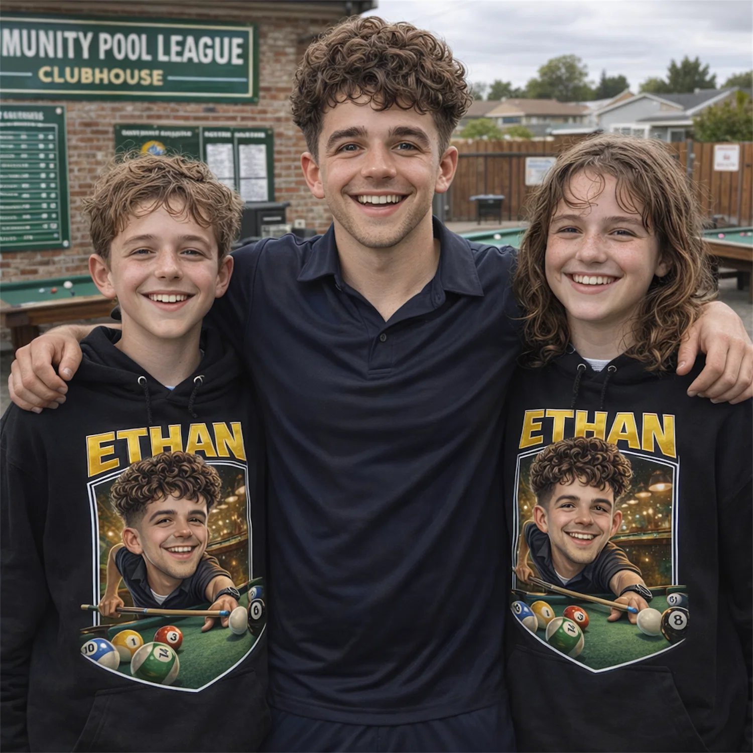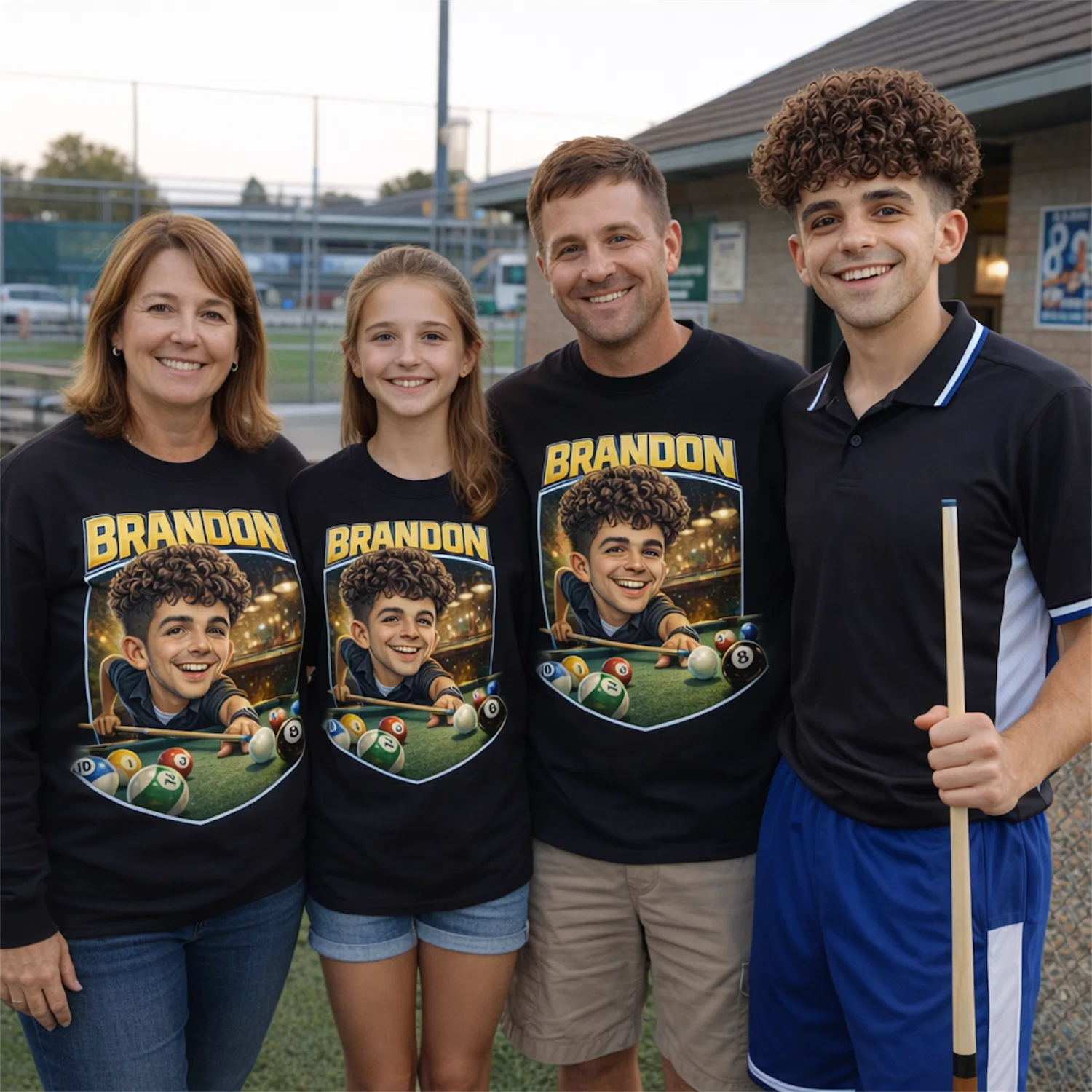 Personalized Pool Player Caricature Matching T-Shirts for Leagues, Teams & Families — Made From Your Photo