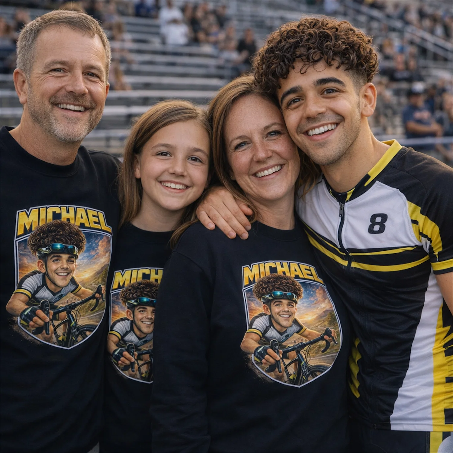 Personalized Cycling Caricature Matching T-Shirts for Riders, Families & Cycling Clubs — Made From Your Photo