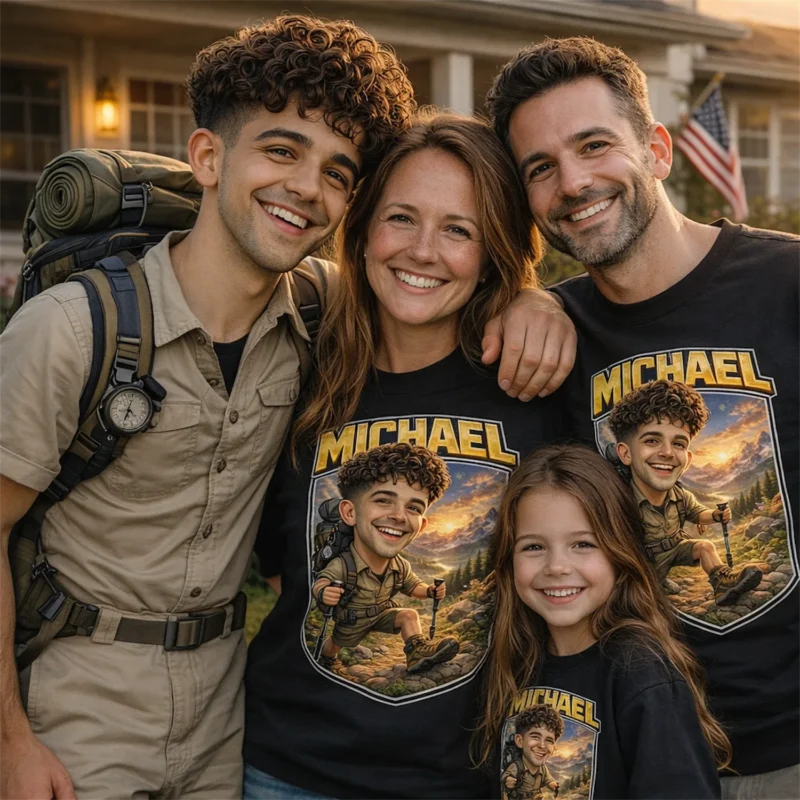 Whether it’s a child’s first big mountain or a family’s bucket-list trail, reaching the top is a moment no one forgets. A custom caricature shirt captures that exact achievement — personalized with the hiker’s name, the peak, and the date — so every time they wear it, they relive that feeling at the top.