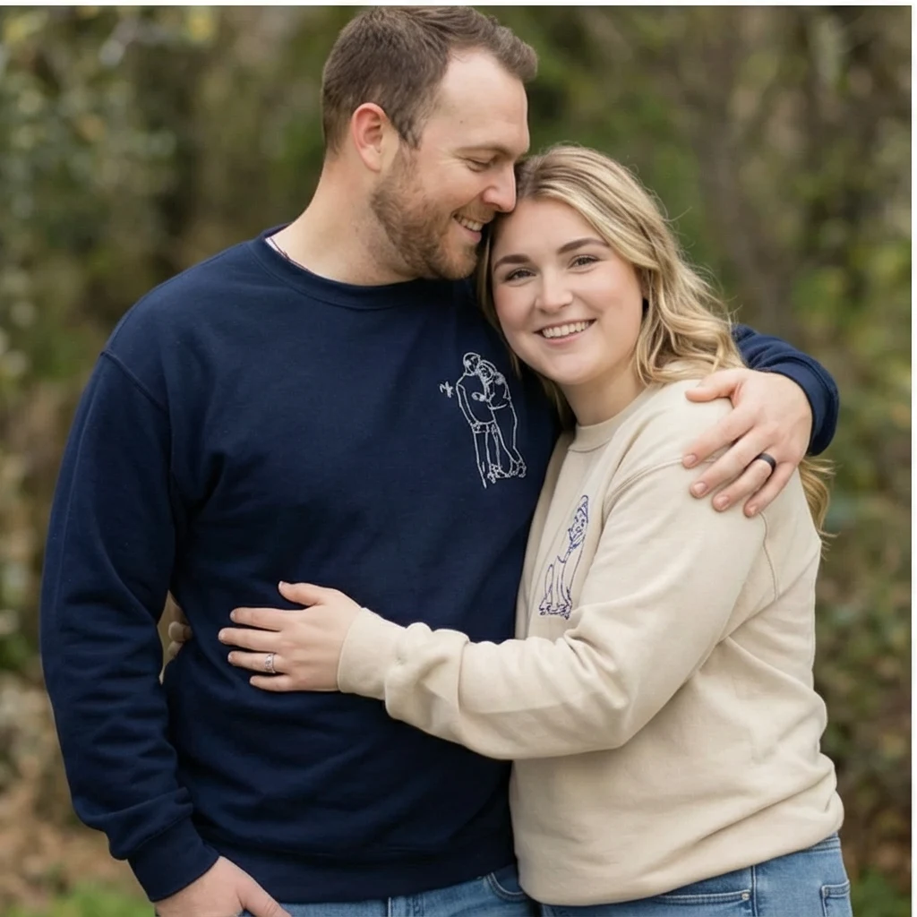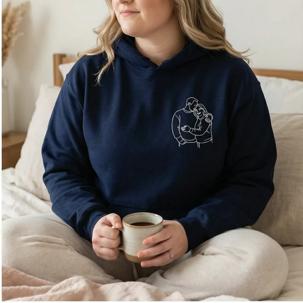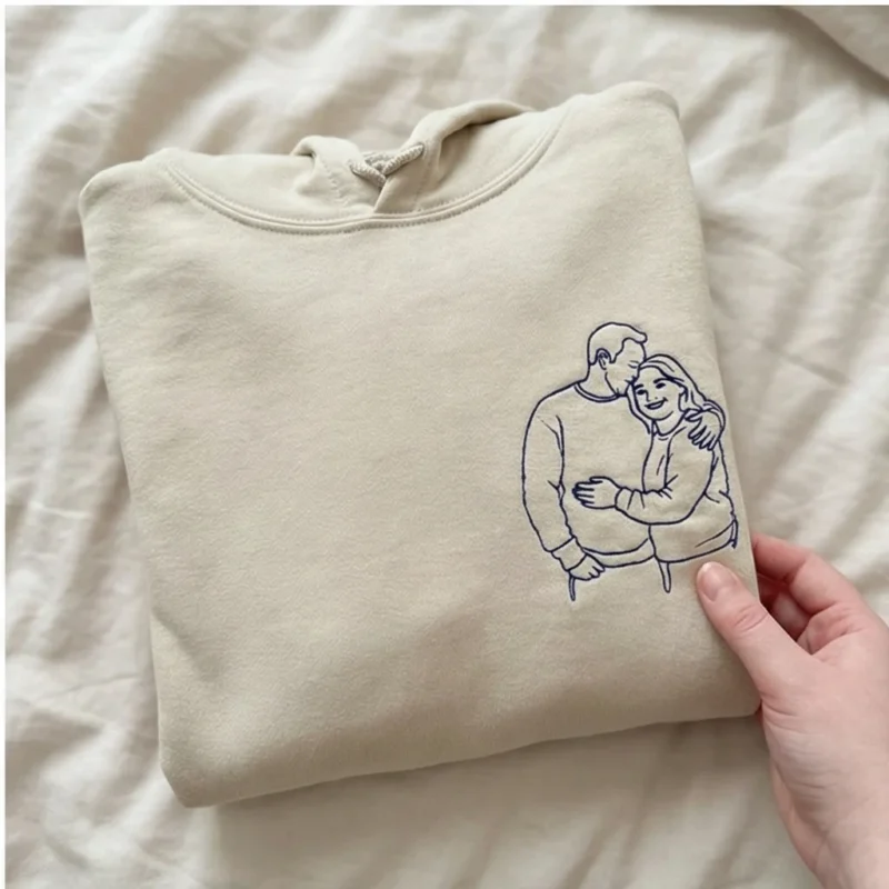 Transform your favorite couple photo into minimalist embroidered lineart. This custom photo hoodie lets you add initials, names, or dates on the sleeves for a deeply personal touch. Available in multiple colors and sizes, it’s the perfect matching hoodie for couples who want to wear their love story. Ideal for Valentine’s Day, anniversaries, birthdays, or long-distance relationships. Keywords: custom photo embroidered hoodie, personalized couple sweatshirt, matching hoodies with initials.
