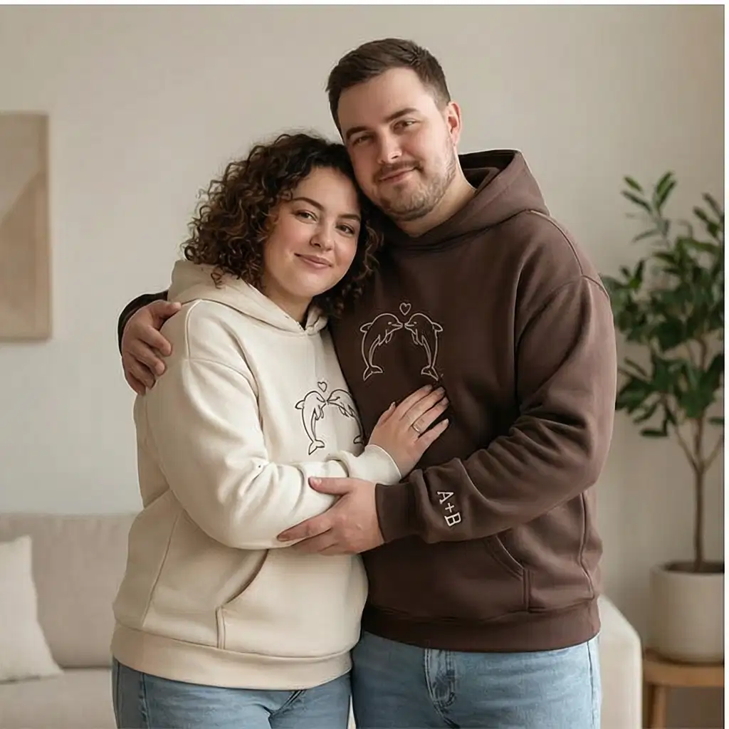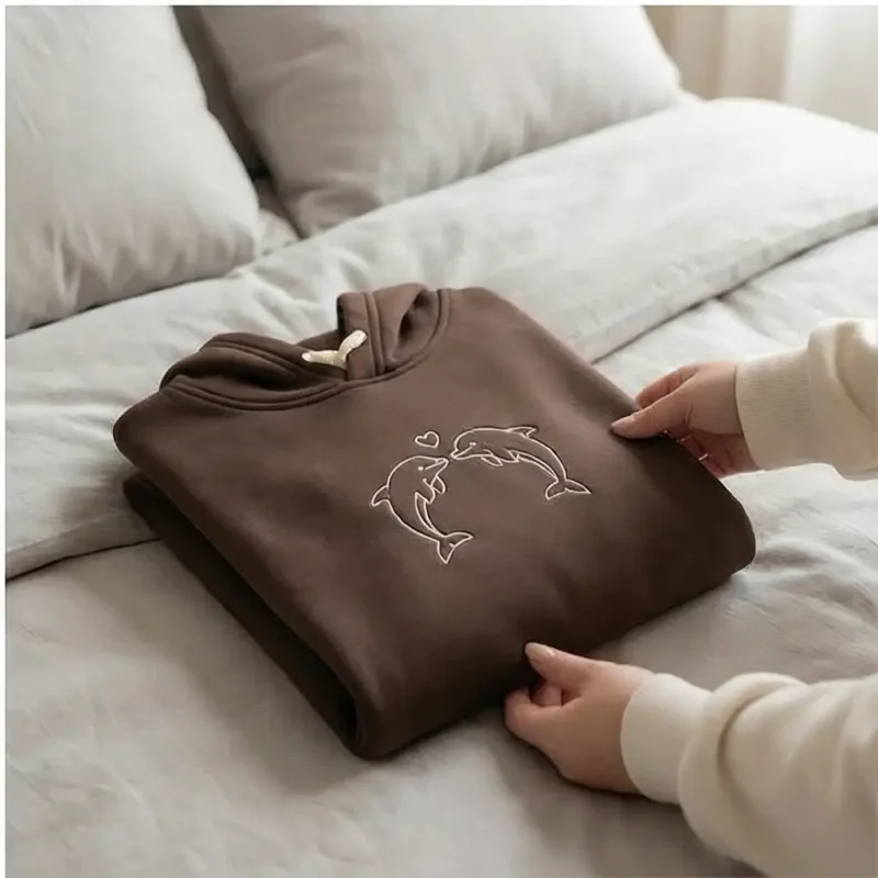 Dolphin Embroidered Hoodie – Romantic Gift for Couples