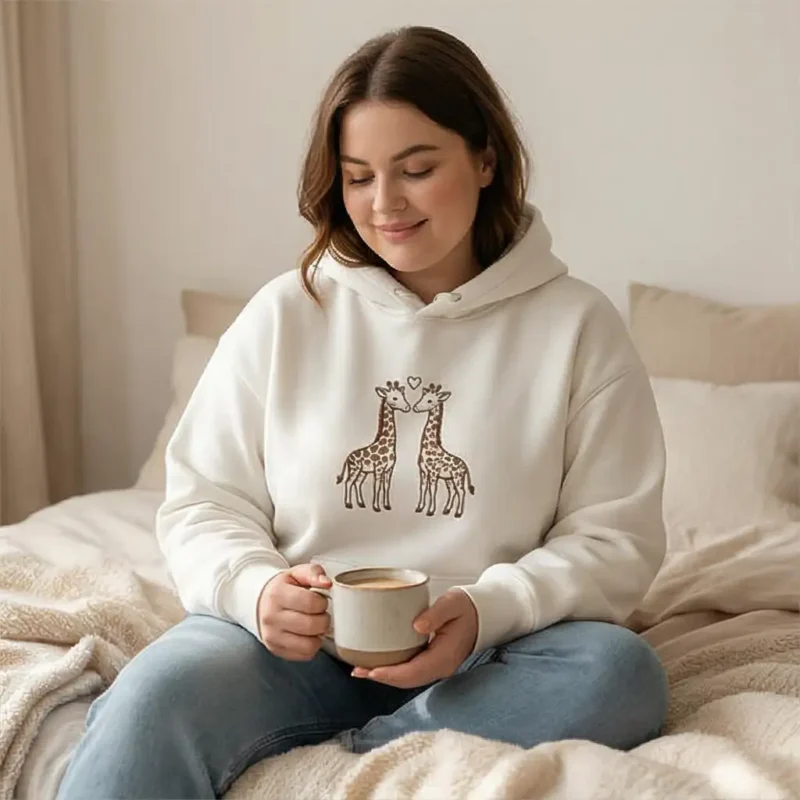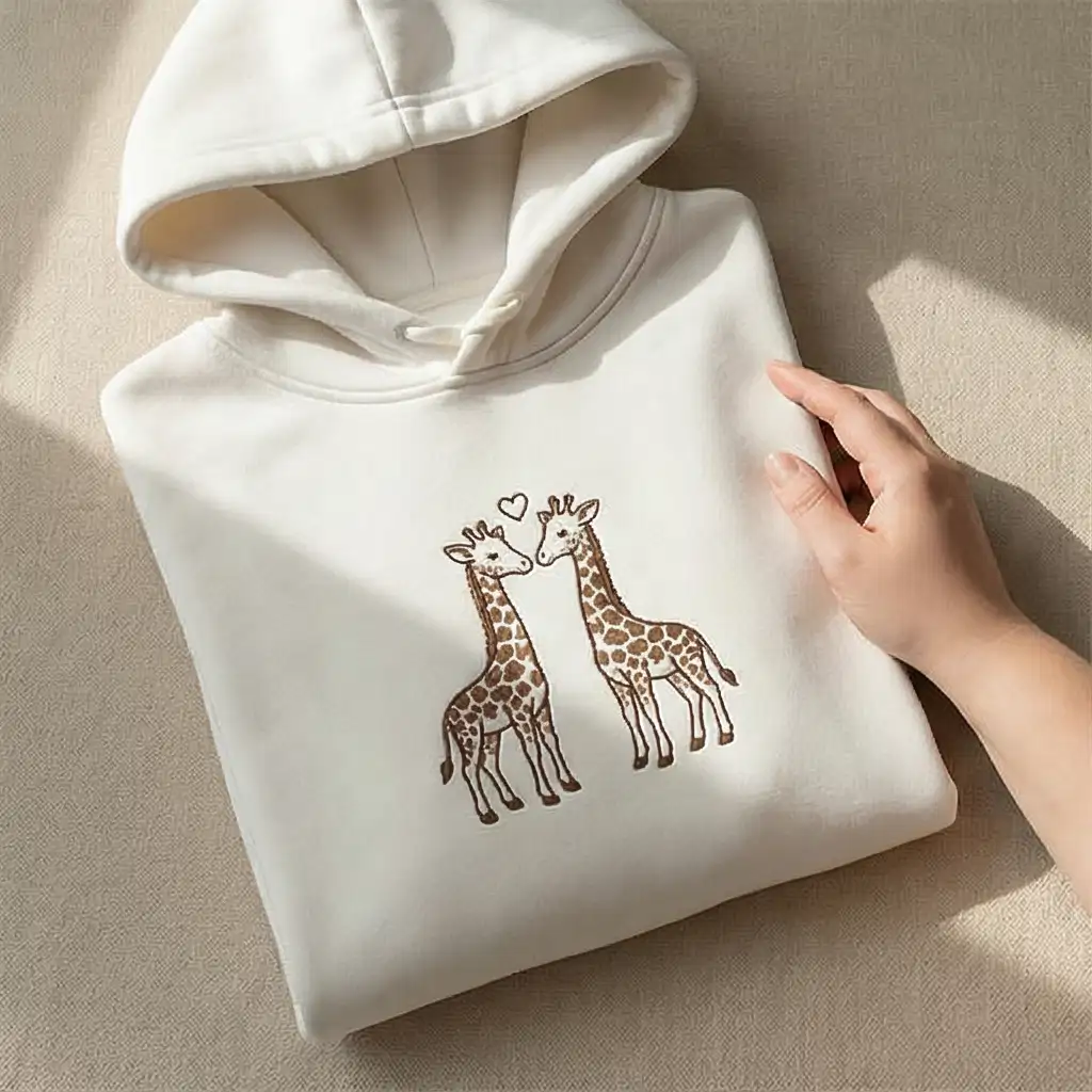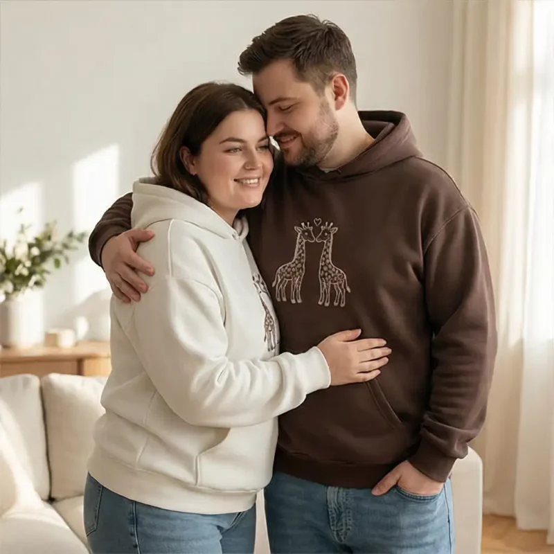 Celebrate your bond with this giraffe embroidered couple matching hoodie, designed to bring warmth, style, and a touch of personalization to your everyday outfits. The adorable giraffe duo stitched on the chest symbolizes connection and affection, making it a perfect gift for couples who love meaningful fashion. Crafted from a soft cotton blend and available in multiple colors and sizes, this hoodie offers a cozy fit for both partners. Add your initials or custom phrase on the sleeves to make it truly yours. Whether you’re heading out for a casual date, cozying up at home, or surprising your partner on Valentine’s Day, this hoodie delivers comfort and sentiment in one package. Ideal for animal lovers, couples, and personalized gift seekers, this hoodie is a top choice for those searching for: matching hoodies for couples, personalized sweatshirts with initials, custom embroidered animal hoodies, and Valentine’s Day couple gifts.