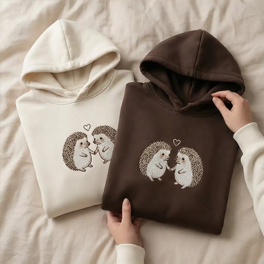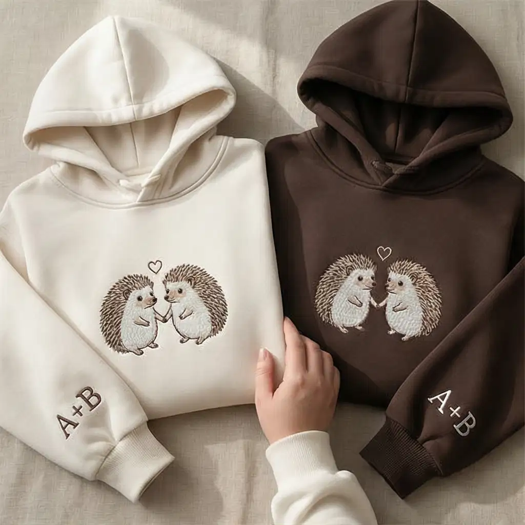 Two hedgehogs holding hands, stitched with love—this embroidered couple hoodie is more than cozy apparel, it’s a wearable memory. Designed for couples who want to express affection through fashion, this hoodie features a premium hedgehog embroidery on the chest and customizable sleeve initials. Available in multiple colors and sizes, it’s perfect for anniversaries, Valentine’s Day, or just casual matching moments. Made from a soft cotton blend, it offers comfort and durability. Ideal for those searching “matching hoodies for couples,” “personalized animal sweatshirts,” or “custom initials hoodie.” Whether you’re gifting or wearing it together, this hoodie brings warmth, style, and a personal touch.