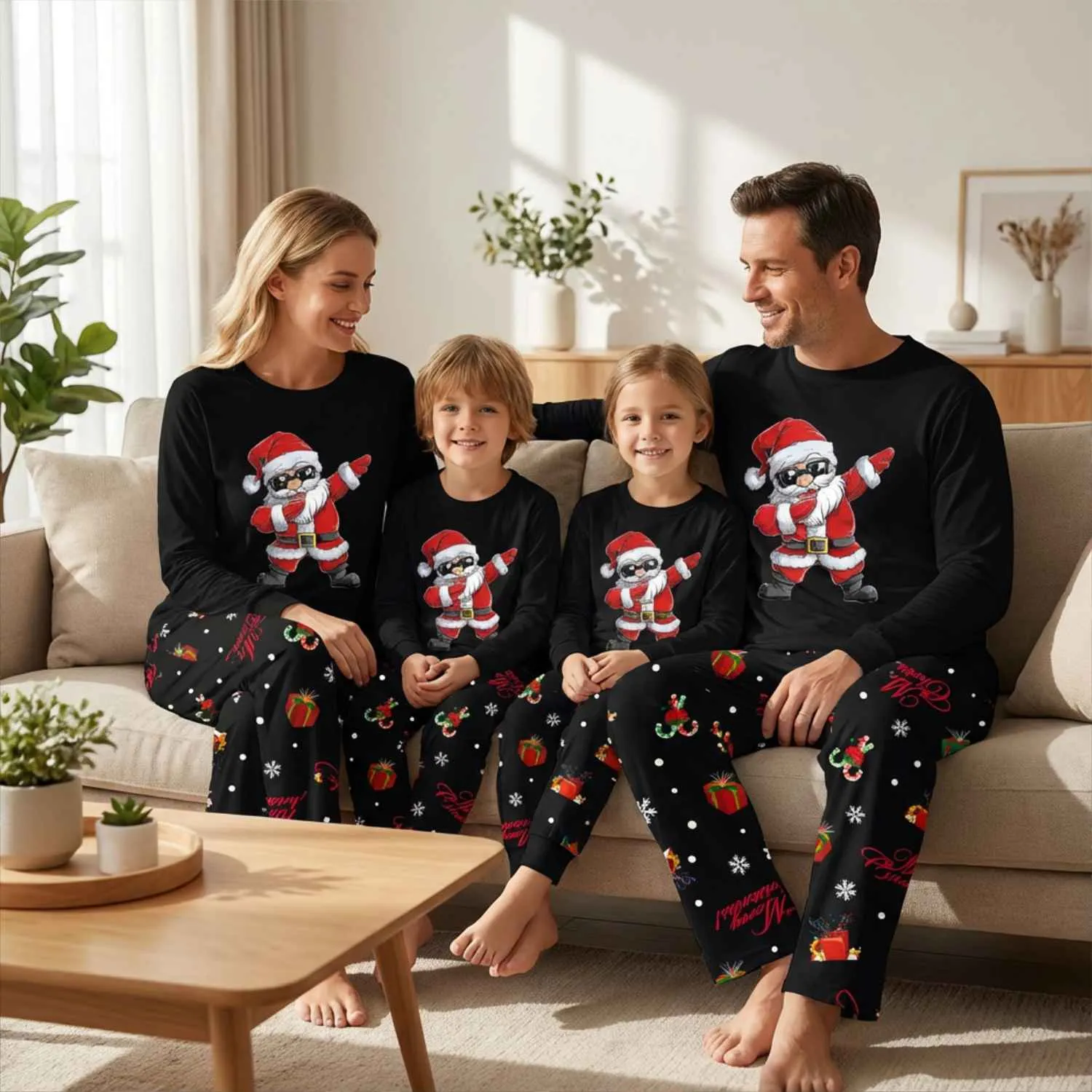 What Makes It Stand Out: Unlike generic holiday sleepwear, this set features a playful Santa doing the dab dance, adding a humorous twist that resonates with kids and teens while still being festive enough for adults. The coordinated design across all sizes makes it a standout choice for Instagram-worthy family photos and TikTok holiday content.
