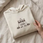 Show your love with this raccoon embroidered matching hoodie for couples with custom initials. The playful raccoon design holding hands with a heart above them creates an instant emotional connection. Personalize the sleeves with your initials, a date, or a meaningful phrase — embroidery that lasts and makes your hoodie unique. Soft fabric, multiple colors, and sizes make it perfect for everyday wear. Ideal for Valentine’s Day, anniversaries, birthdays, or as a cozy gift for animal lovers. Popular searches include “couple hoodie with initials,” “raccoon embroidered sweatshirt,” and “personalized Valentine’s hoodie.”