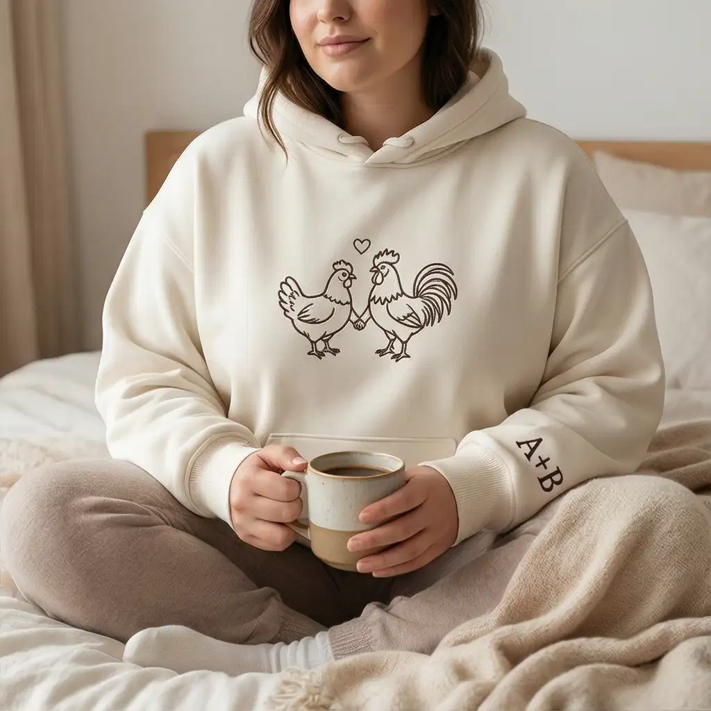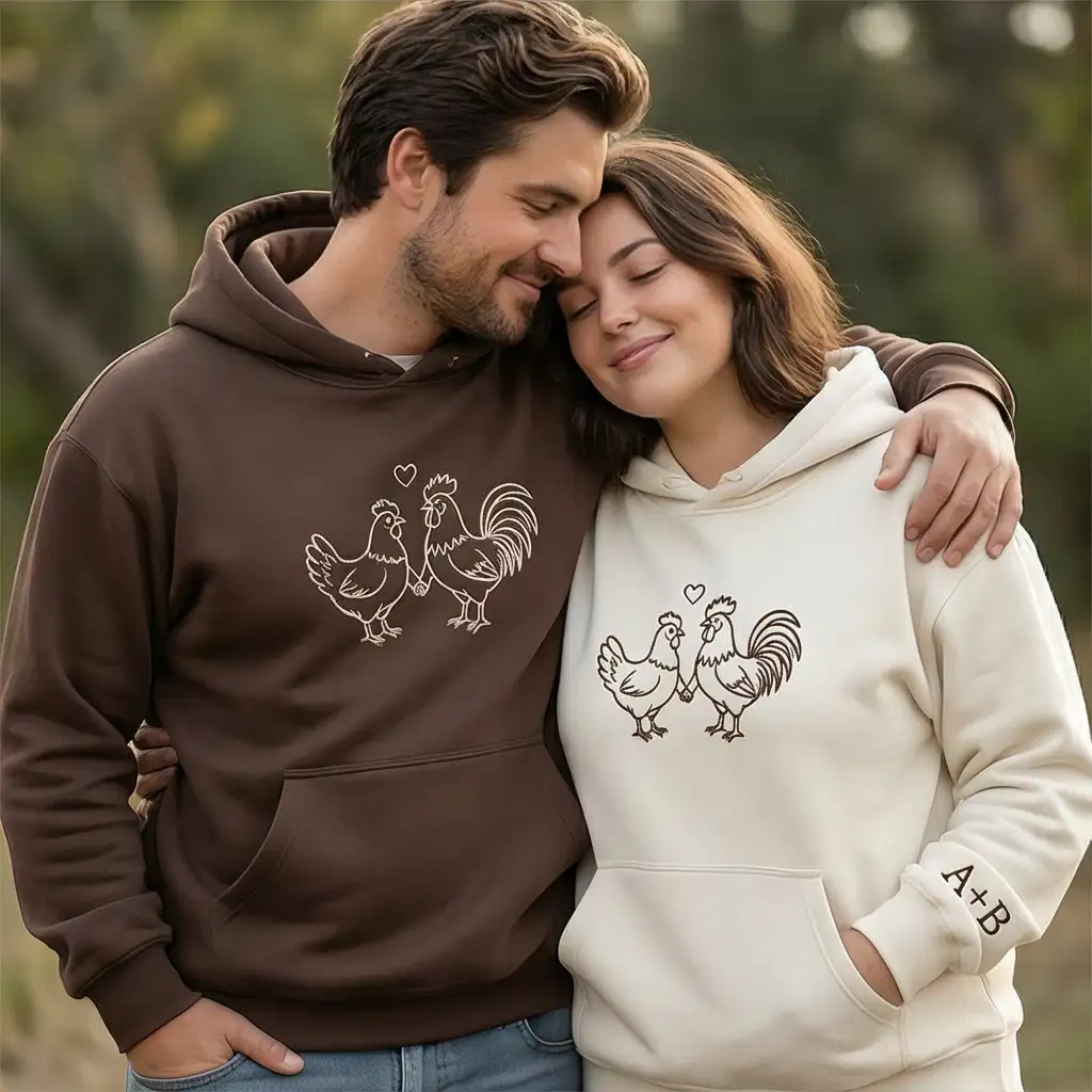 Celebrate love with a hoodie that tells your story. This romantic sweatshirt features a finely detailed rooster & hen embroidery, symbolizing affection and togetherness. Available in multiple colors and sizes, it’s designed for couples who want to share their bond in style. Personalize the sleeve with initials, custom words, or a special phrase, making it a unique gift for Valentine’s Day, anniversaries, birthdays, or just because. Perfect for animal lovers, couples seeking matching embroidered hoodies, and anyone who values personalized fashion with meaning. Keywords naturally included: rooster & hen embroidered hoodie, matching couple sweatshirt, custom sleeve embroidery.