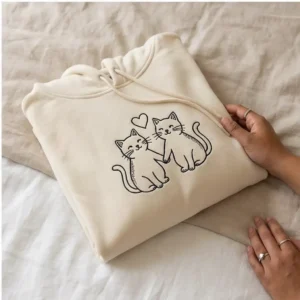 Love stitched in every detail—this swans embroidered matching hoodie for couples with custom initials brings warmth and meaning to your wardrobe. Featuring two swans facing each other with a heart above, it symbolizes loyalty and affection. Personalize the sleeves with your initials, a phrase, or any custom text to make it uniquely yours. Available in multiple colors and sizes, this personalized sweatshirt is perfect for Valentine’s Day, anniversaries, birthdays, or cozy date nights. Designed for couples who want a romantic yet minimalist fashion statement, it’s the ultimate gift idea that blends comfort, symbolism, and individuality. Keywords naturally included: swans embroidered hoodie, matching hoodie for couples, personalized sweatshirt with initials, custom letters on sleeves.