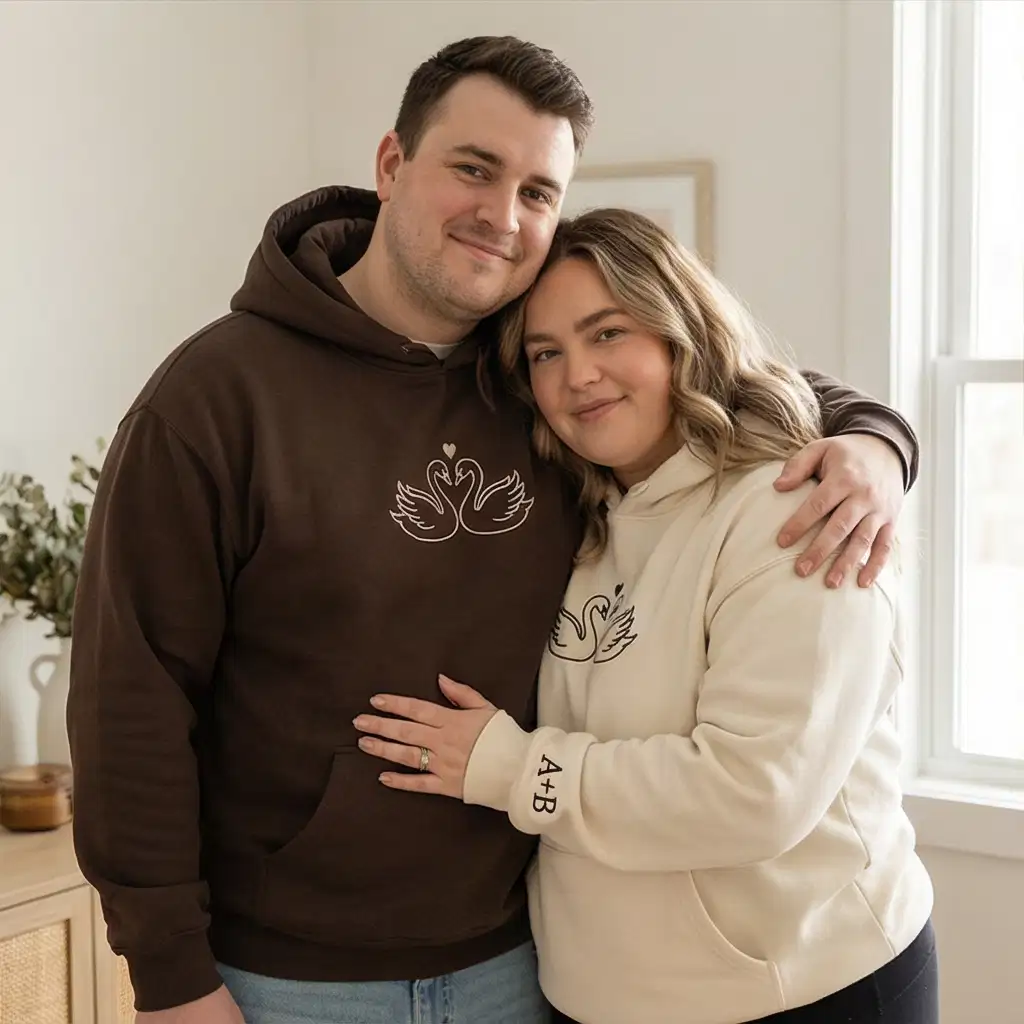 Swans Embroidered Matching Hoodie – Custom Initials for Couples