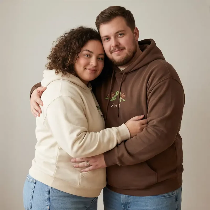 Show your love without saying a word. These Turtle Embroidered Matching Hoodies are a cozy, symbolic way to celebrate your bond. Featuring two cartoon-style turtles with a heart above, this design speaks to connection, loyalty, and warmth. Available in multiple colors and sizes, each hoodie can be personalized with initials or custom phrases on the sleeves – perfect for anniversaries, Valentine’s Day, or just because. Ideal for couples who value meaningful gifts and want to wear their story. Keywords: turtle embroidered hoodie, matching hoodies for couples, personalized sweatshirt, custom letters on sleeves.
